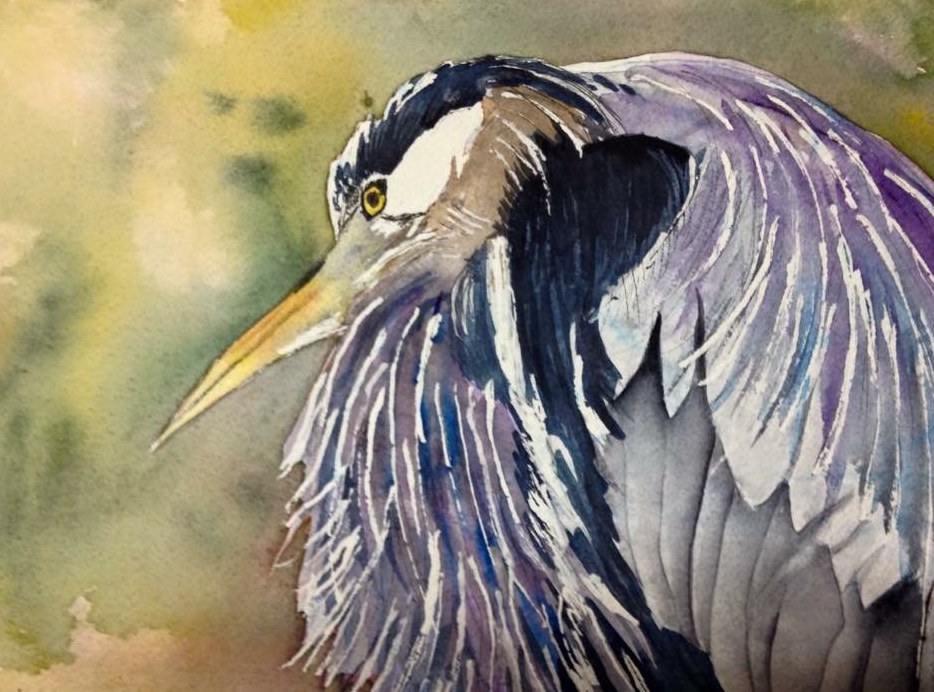 Heron with Green 11×7 $ 154 Watercolour